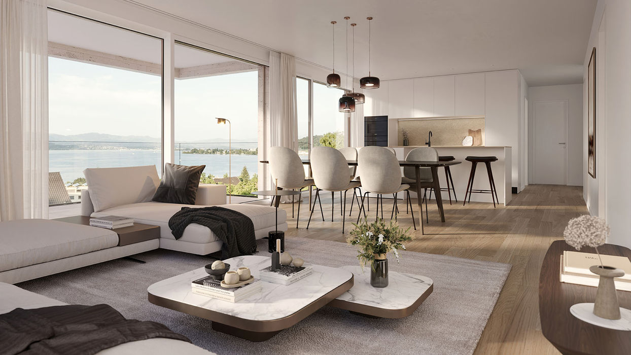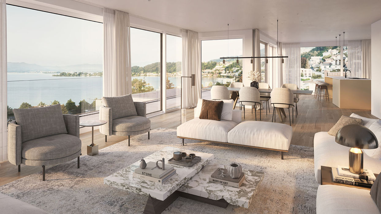 Grosszügige Fensterfronten eröffnen beeindruckende Ausblicke, während Terrassen und Balkone den Übergang zwischen Innen- und Aussenbereichen fliessend gestalten. Dieses Zusammenspiel aus Stil, Umgebung und Exklusivität macht „PrimeView“ zu einem unvergleichlichen Wohnensemble, das auch höchste Ansprüche erfüllt